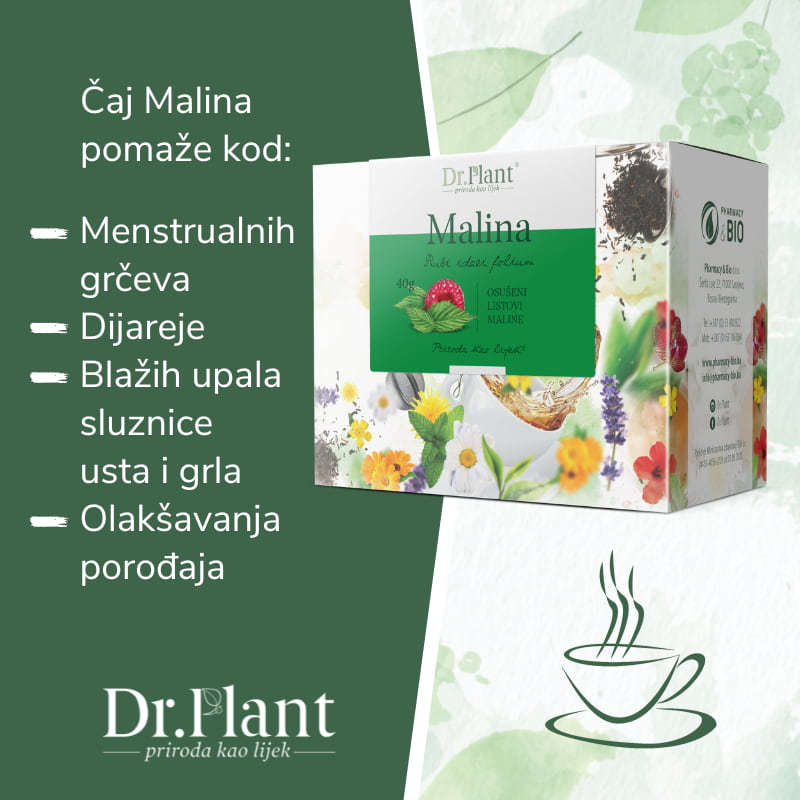 Čaj od listova maline sadrži vitamine i minerale koji su veoma bitni u očuvanju zdravlja ženskog reproduktivnog sistema kao i za regeneraciju tkiva materice.